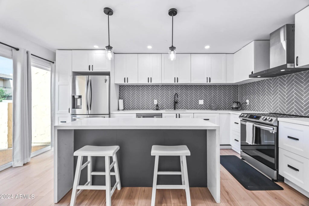 Price Improvement - Now $370,000! Fully remodeled in 2023, this stunning 2-bed, 1-bath townhouse in Old Town Scottsdale's Woodland Springs features vaulted ceilings, luxury vinyl plank flooring, a modern kitchen with quartz counters, new appliances, and sleek cabinetry. Enjoy a private patio with peaceful garden views and extra storage. 2024 community upgrades include a resort-style pool, hot tub, gym, sauna, and tennis courts—all covered by a low $306.25/mo HOA. Investor-friendly: one of the few Scottsdale communities allowing short-term rentals—recently leased for $2,200 in just 2 weeks! Prime location near Fashion Square Mall, Old Town dining, nightlife, galleries, golf, and spring training. A rare turnkey gem perfect as a primary home, vacation rental, or income property!