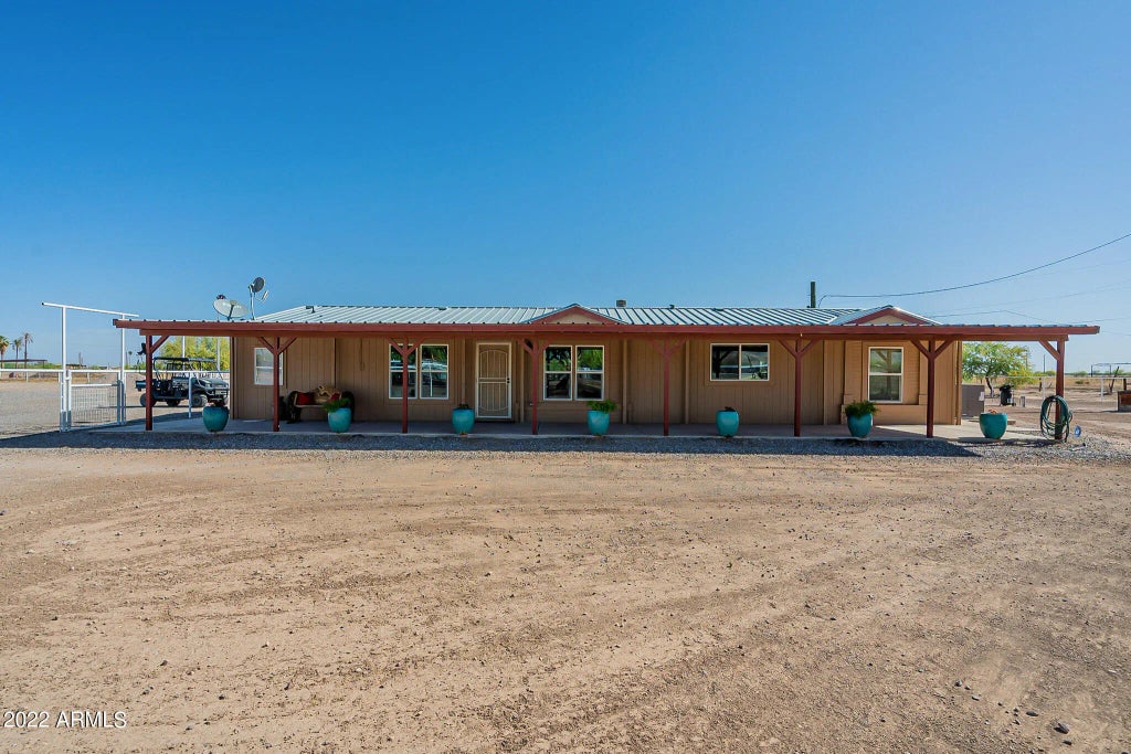 The Ultimate Horse Property! Situated on over 6 acres with irrigation rights in the heart of Casa Grande, this place was made to impress. Let's kick it off with over a million lumens lighting the 180'X300' Roping Arena, automatic Priefert roping chute under the 30'x50' covered boxes. 100'X80' Custom 8 stall horse barn with breezeways, automatic waters, fans, leading out to the 4 stall automatic horse jogger. 20'x16' tack room that's wired and has a split unit. 50'X60' Shade that covered on 3 sides, concrete parking, RV Hook Up, and 3 wired containers. 45'x52' Hay barn with concrete, 110 power, and a full RV hook up. 36'x48' small animal shades, 12 total pens,show ring, wash area. House features custom cabinets, granite countertops, stainless steel appliances, and full covered porches.