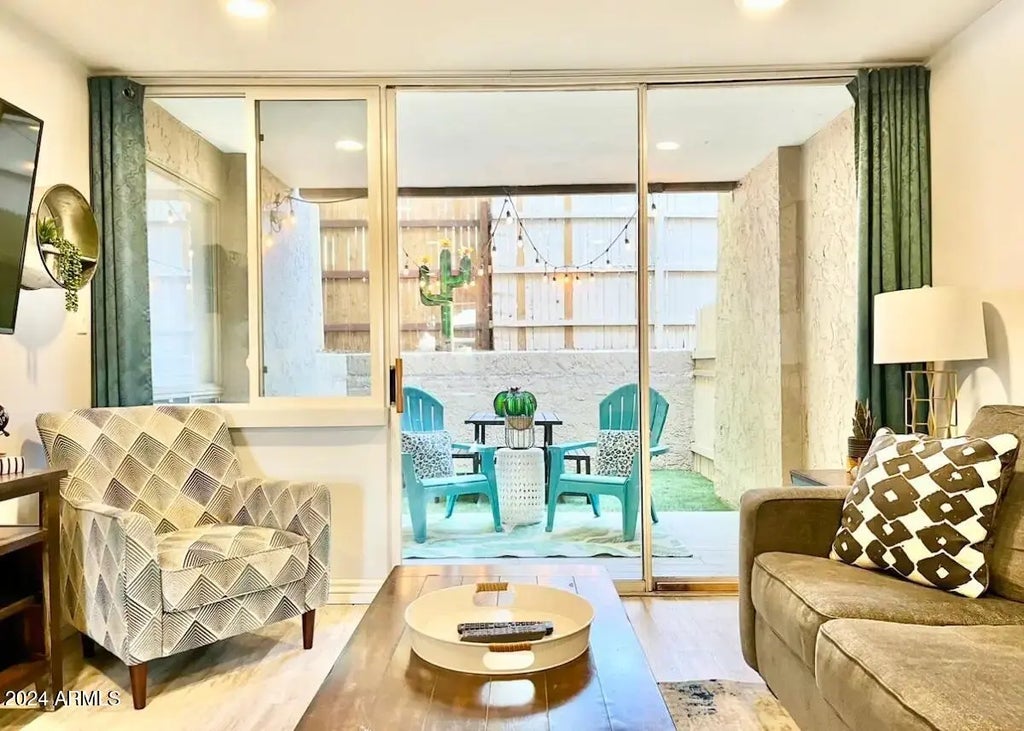 One of a kind, completely revamped floorplan features 1-bedroom configured as a 2-bedroom unit. AIRBNB & VRBO approved complex! Short term(nightly/weekly/monthly) rentals are allowed. Also, great for SECOND HOME or OWNER OCCUPANT. Fully upgraded unit. As shown in photos, everything conveys. HOA Monthly fee covers all utilities (electric, water, trash removal, AC/heat, professional management & basic cable TV). Covered, assigned parking spot. Heated community pool and spa, clubhouse with full kitchen, exercise equipment & pool table! CLOSE PROXIMITY to Old Town Scottsdale, Fashion Square Mall, Shops, Restaurants, Sporting Events & Greenbelt (miles of walking & biking trails),Talking Stick Resort, & much more.