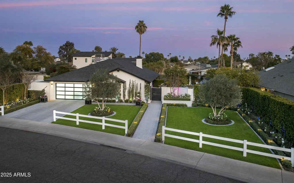 Step into elegance at this meticulously designed retreat, fully remodeled in 2022. The exquisite finishes, upscale lighting system that enhances both the interior & exterior ,along with exquisitely designed landscaping embodies modern luxury. Vaulted ceilings with custom trim welcome you into the living room, anchored by a stylish fireplace and a sleek dry bar. The gourmet chef's kitchen features quartz countertops, stainless steel appliances, and abundant natural light, blending functionality with sophistication. The spacious primary suite offers a tranquil escape. Outside, your private backyard paradise awaits— a cozy fire pit, an outdoor fireplace, and a chic bar with a sink. A covered ramada provides shaded lounging, while the resort-style pool and spa offers the perfect retreat.