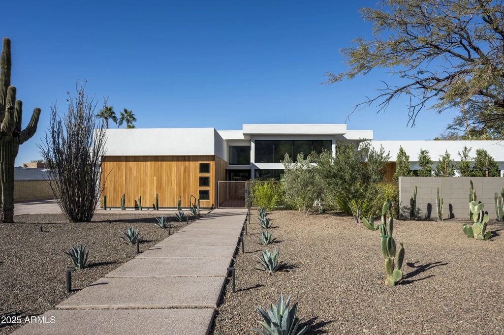 This architectural masterpiece, completed in 2024, with interiors by Joel Contreras Design, offers unparalleled elegance and comfort. This exquisite 5-bedroom, 4.5-bathroom estate, boasting 4,496 square feet of luxurious living space on a sprawling 0.56-acre lot and is located in the highly sought-after Hopi school district. The expansive great room with over 2,000 square feet and 16-foot ceilings, seamlessly blends the living, dining, and family areas and features stunning views of Camelback Mountain, creating an inviting atmosphere perfect for entertaining and relaxation. The gourmet kitchen is a chef's dream, featuring Thermador appliances, Vadara Quartz countertops, Shinnoki cabinetry, a 15.5-foot island, and a convenient pot filler. This home is great for entertainers and families.