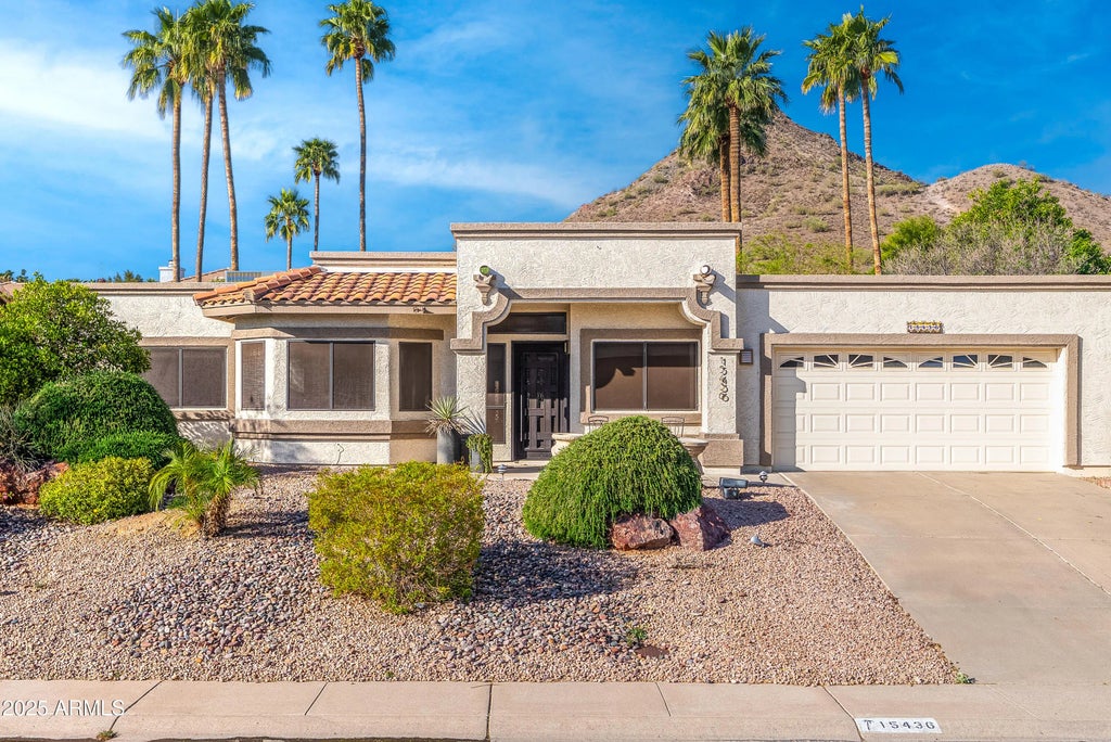***SELLER OFFERING $10,000 TOWARDS BUYER CLOSING COSTS*** Enjoy breathtaking mountain views from both the front and back of this beautifully appointed, single-level 4-bedroom custom home, perfectly situated against the Lookout Mountain Preserve. The open and versatile floor plan boasts vaulted ceilings with exposed beams, a striking corner fireplace, and French doors that open to an expansive covered patio. The private resort-style backyard features a PebbleTec pool, built-in BBQ, and lush landscaping is ideal for entertaining or relaxing. The updated eat-in kitchen includes stainless steel appliances, a breakfast bar, and double ovens. The spacious primary suite offers bamboo flooring, dual sinks an update shower and a walk-in closet. Two guest bedrooms in the back provide comfort and privacy, with one offering direct patio and pool access. The additional front bedroom, complete with built-ins and stunning views, is perfect for a home office, playroom, or media room. Enjoy direct access to scenic preserve trails just around the corner! Conveniently located near the 51, 101, and Central Corridor, as well as top-rated Great Hearts and BASIS Academies.