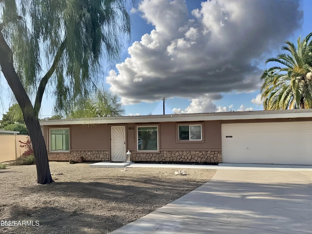 Nestled just steps from the Biltmore's premier shops and restaurants, this bright 2-bed, 2-bath single-level home offers 1,104 sq ft of freshly updated comfort on a sprawling 0.25-acre lot with NO HOA. Inside, enjoy new plush carpeting throughout, crisp fresh interior paint, and a freshly painted garage floor. Sunlit living and dining areas flow seamlessly to the outdoors, where the oversized lot invites endless possibilities—entertaining, lush gardens, or even a future pool. Move-in ready and perfectly positioned for the best of Phoenix living!