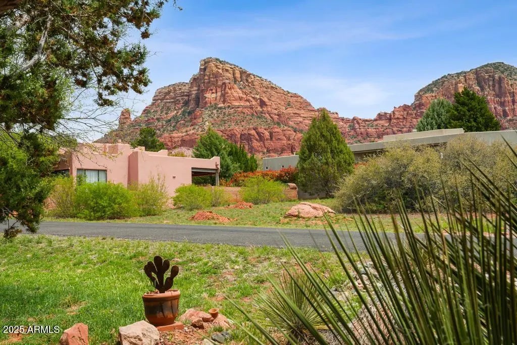 Nestled in Sedona's scenic red rock landscape, this fully furnished, single-level home in the desirable Indian Cliffs neighborhood offers refined living with no HOA. Featuring 3 spacious bedrooms (two with private exits and walk-in closets), 2 bathrooms with double vanities, and a luxurious primary suite with Jacuzzi tub, the home blends comfort with style. Highlights include a vaulted-ceiling great room with gas fireplace, a modern kitchen with gas cooktop and island, 24x48 plank tile flooring, a well-appointed laundry room, and a 2-car garage with storage. Set on a 10,018 sq ft corner lot, it provides privacy and outdoor space, all within easy reach of Sedona's galleries, trails, and the Chapel of the Holy Cross. Move-in ready as a primary home, vacation retreat, or investment.