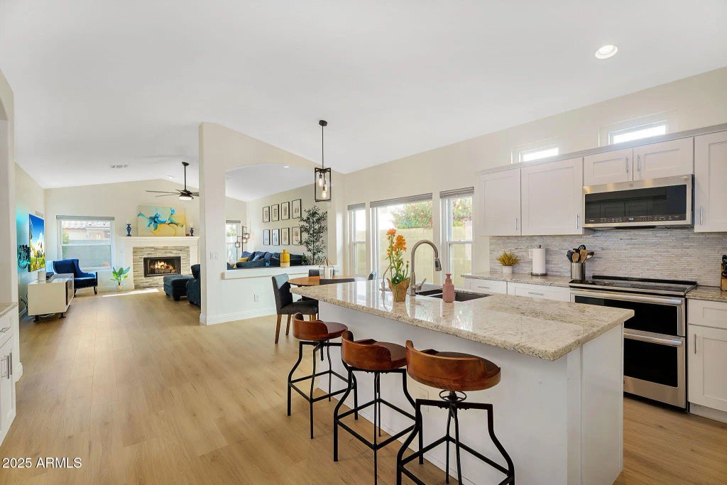 Charming remodeled home in prime Gilbert location! Discover your dream home in this beautifully remodeled gem, featuring 4 spacious bedrooms and 3 modern baths, where every detail has been thoughtfully considered! As you step inside, you'll be welcomed by brand-new luxury vinyl plank flooring installed 2025 and plush carpeting throughout, enhanced by fresh paint that brightens every room.The heart of this home boasts a modern kitchen featuring exquisite granite countertops and ample storage space. The open layout effortlessly connects the kitchen to the living areas, making it perfect for entertaining family and friends. The cozy fireplace in the family room adds a warm touch, creating an inviting atmosphere for gatherings. With a convenient 3-car garage & EV charger, you'll have plenty of room for vehicles and storage. Enjoy year-round comfort with an A/C unit installed in August 2018, updated windows in 2019 for improved energy efficiency, and the peace of mind that comes from a fully replaced roof underlayment from September 2018. The bathrooms have been elegantly updated with new fixtures and granite countertops, providing a spa-like experience right at home. Set on a generous lot with lush sod, this backyard oasis offers a private retreat for relaxation and outdoor activities. Convenience is key, as this home is located just minutes from downtown Gilbert and the US60 freeway, ensuring quick access to shopping, dining, and entertainment.