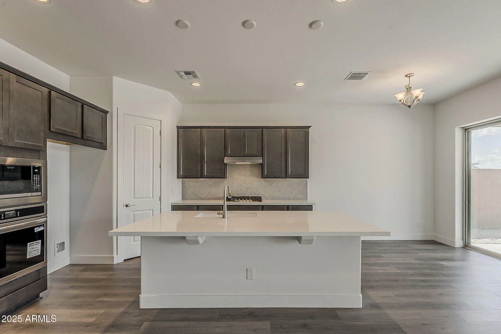 The only ready-now home with stunning desert sunsets and no rear neighbors. BRAND NEW MOVE-IN READY HOME! BUILDER IS OFFERING BELOW MARKET FINANCING RATES USING BUILDER'S PREFERRED LENDER! ASK ABOUT INCENTIVES INCLUDING SPECIAL FINANCING RATES. THIS HOME WON'T BE AVAILABLE FOR LONG! Enjoy a chef-inspired kitchen with built-in gas appliances, 30'' cooktop, wall oven, quartz countertops, composite undermount sink, and 42'' Barnett Maple Slate cabinets accented by a designer herringbone backsplash. Elegant RevWood flooring, plush carpet with upgraded pad, and executive-height vanities add sophistication throughout.