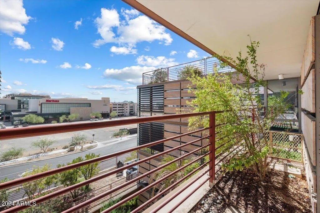 Experience elevated living in this beautifully maintained, south-facing 5th-floor residence at Optima Camelview. Finished with travertine flooring in the main areas and wood-look tile in the bedrooms, the interior blends elegance and warmth. The kitchen features granite countertops with a matching full-height backsplash, offering a clean and streamlined look. Additional highlights include a Bosch in-unit washer and dryer, fresh interior paint, and EV charger readiness. This unit also comes with two dedicated parking spaces conveniently located next to the elevator, a rare perk in the community. Located in the heart of Scottsdale, Optima Camelview offers resort-style amenities including indoor and outdoor pools, a spa, fitness center, basketball courts, lush landscaping, and on-site concierge service. With city light views and walkable access to top dining, shopping, and entertainment, this home offers comfort, convenience, and a prime location.