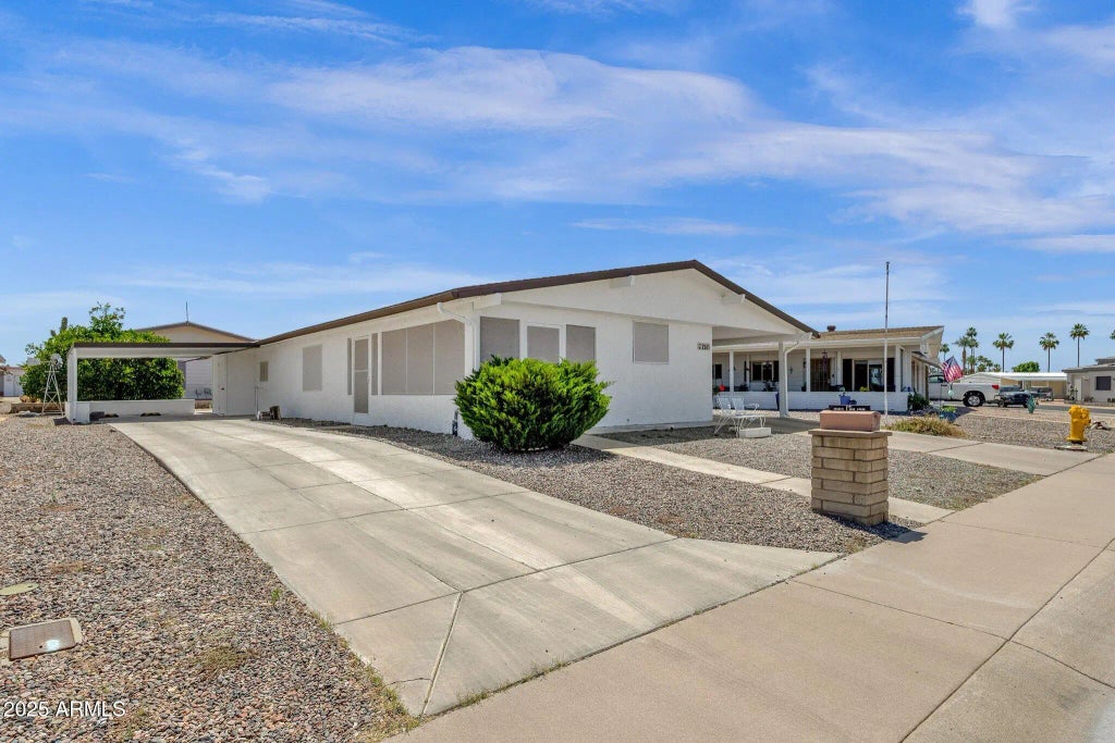 Welcome to 2241 N. Nicklaus Road, a beautifully remodeled home nestled in a quiet, well-maintained 55+ community. This move-in-ready gem offers a perfect blend of modern comfort and low-maintenance living. This thoughtfully updated property offers modern finishes, abundant natural light, and generous storage, all within a peaceful, low-maintenance neighborhood. The property features 2 spacious bedrooms and 2 updated bathrooms with elegant fixtures. Find an open-concept living area with natural light and a fully remodeled kitchen with quartz countertops, stainless steel appliances and a breakfast bar. This home offers an inviting sunroom - perfect as a reading nook, hobby space, or indoor garden retreat and ample storage throughout, including built-ins, closets, and storage room shelving. Community Amenities: Friendly and active 55+ neighborhood, clubhouse, pool, walking trails, fitness center, golf course and social events. Low-maintenance living with HOA covering common areas and amenities. Conveniently located near restaurants, shopping, and Falcon Field.