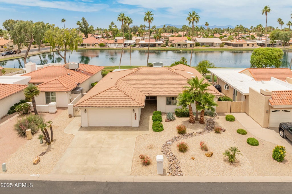 Abilene Model with a beautiful lake view! This 3 Bed 2 bath Waterfront home provides those AZ Sunrises and Sunsets over the lake and fountain every day. Brand New HVAC Installed 8/27/25! The spacious kitchen features stainless steel appliances, granite countertops, white cabinetry, a wet bar, and a designer backsplash. The main living space include gorgeous maple wood flooring. The updated master bathroom has separate laundry space, bidet, and his-and-her vanities. For the ultimate outdoor living, there is an expanded covered patio with breathtaking views of the lake and sunset. Updated stamped concrete throughout front and back of home. Sun Lakes is well-known and adored for its golf, lakes, pickleball, green spaces, clubs, and social events. Don't miss this fantastic Sun Lakes home!