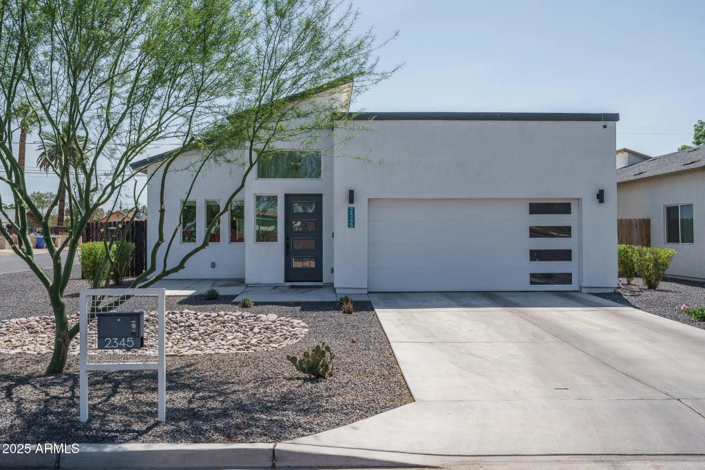 Located on a corner lot just minutes from everything Arcadia and downtown Phoenix has to offer is this newer modern-Farmhouse style home that offers 3 bedrooms & 2.5 baths in 1848 SqFt with an open great room layout ideal for family living and entertaining. The kitchen is beautifully designed with crisp white shaker-style soft-close cabinetry with crown molding and undercabinet lighting, modern tile backsplash, Quartz counters, stainless appliances, and breakfast bar seating on the center island and peninsula. Sliding glass doors lead out from the great room to a big, fenced backyard with a covered patio, additional 30x30 concrete patio and grass for kids and pets to play on. The primary bedroom also has sliding doors to the backyard and a dream en-suite bath complete with dual vanities, a tiled shower with rain showerhead and bench seating, gorgeous decorative tile floors, and a walk-in closet. Lots of windows, 9-ft and vaulted ceilings, and a neutral color palette throughout provide a light and airy feeling throughout this special home. Other features include laundry cabinets and sink, and an oversized 2-car garage, plus no HOA!