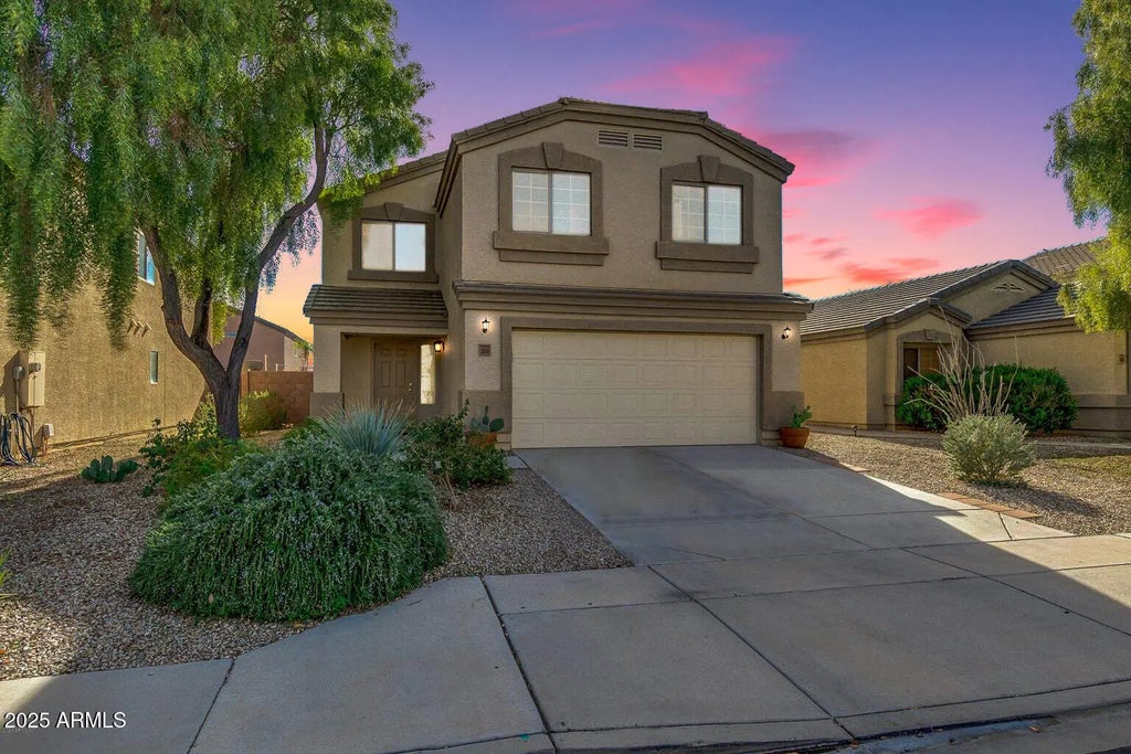 SHORT SALE APPROVED! Your search stops here with this two-story home! New ac unit (2023) and a 7.2 KW solar system. Discover open common areas with abundant natural light, a convenient powder room, and custom paint finishes. Open-concept kitchen features a pantry, stainless steel appliances, quartz counters, and plenty of cabinets. Upstairs, a spacious loft with endless entertainment possibilities and the bedrooms await! The main bedroom has a private bathroom with a tub/shower combo and a walk-in closet. Serene backyard offers a covered patio for al fresco dining, shade trees galore, and so much play space. Enjoy the San Tan Heights 19 playgrounds, volleyball and basketball courts, 6 mi. of trails/paths, a community pool, and a community center w/work out facility. Act now!