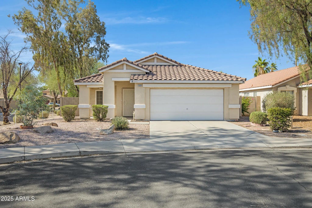 Welcome to this beautifully updated 4-bedroom, single-level home tucked away in a quiet cul-de-sac, near the neighborhood park. This move-in ready property offers both comfort and convenience, with thoughtful upgrades and a functional layout perfect for everyday living and entertaining. Inside, you'll find fresh interior paint, new vinyl flooring, and new carpet. The spacious living area features a cozy fireplace, while the kitchen overlooks the backyard and includes appliances, a kitchen island, and plenty of room for hosting. Major upgrades include a 2020 AC unit, 2024 water heater, and 2018 energy-efficient windows. Enjoy peace of mind and lower energy bills with solar panels that will be fully paid off at closing. Also included, built-in garage storage, washer, dryer and turf. Even better, the solar panels help reduce your monthly energy billsadding long-term value and sustainability. Located just minutes from Chandler-Gilbert Community College, Chandler Municipal Airport, the 202 Freeway, and a variety of shopping, dining, and entertainment options, this home checks all the boxes for location, lifestyle, and efficiency.