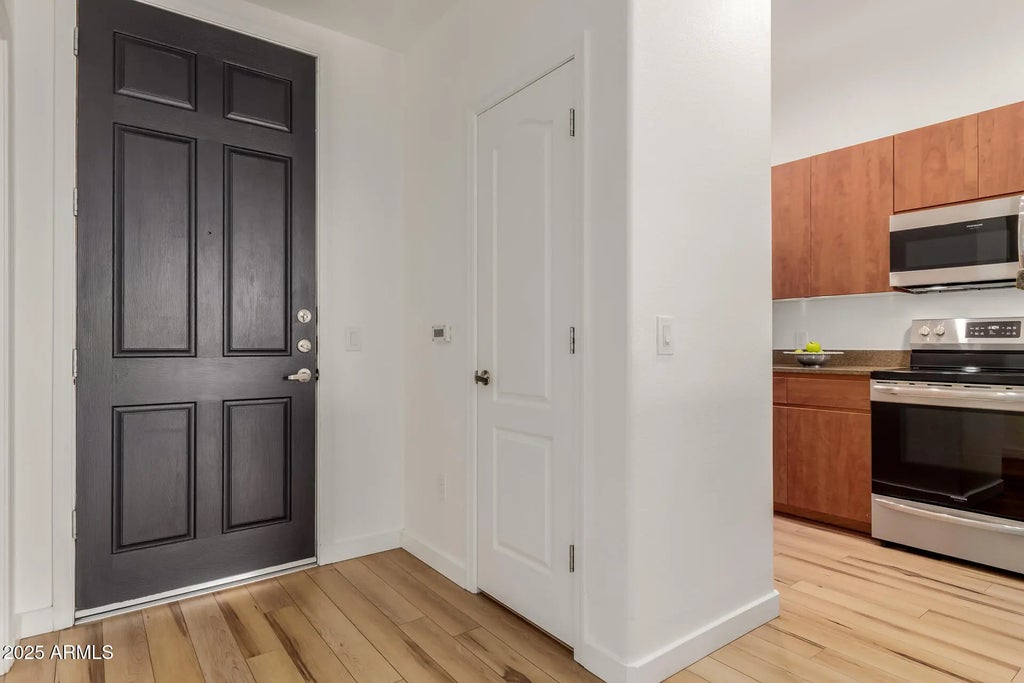 Best price in Aderra! This remodeled one bedroom condo in the bustling new PV Phoenix area is the lowest priced unit in Aderra! The charming home is MOVE IN ready and has been recently renovated with flooring, paint, new appliances, new stainless kitchen sink, new bathroom vanity and more. With modern plank flooring throughout and a newly tiled fireplace this home is cozy and warm. The luxury condominiums at Aderra offer a resort style community with heated pool, spa, fitness center and a clubhouse for social events. Located within walking distance to Stonecreek Golf Club, restaurants like Blanco Cocina and Flower Child and activities like yoga and more! This home can be a true lock and leave or a full time residence.