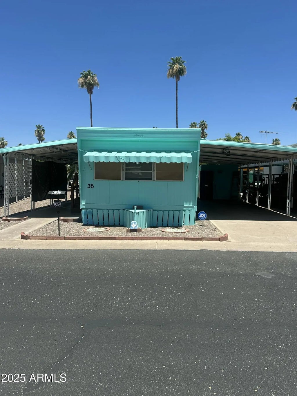 Windsor, a premier 55+ gated community in Mesa, AZ, where safety, fun, and connection come together. Enjoy peace of mind with 24/7 security and gated access, plus a vibrant social life with amenities like a clubhouse, pool, tennis courts, and fitness center, and laundry room on premises. Beautiful walking paths, events, and wellness programs foster an active, healthy lifestyle. This one bedroom/one bath unit has a covered patio AND covered carport. The fresh painted exterior gives it a fun vibe with a large backyard, too.