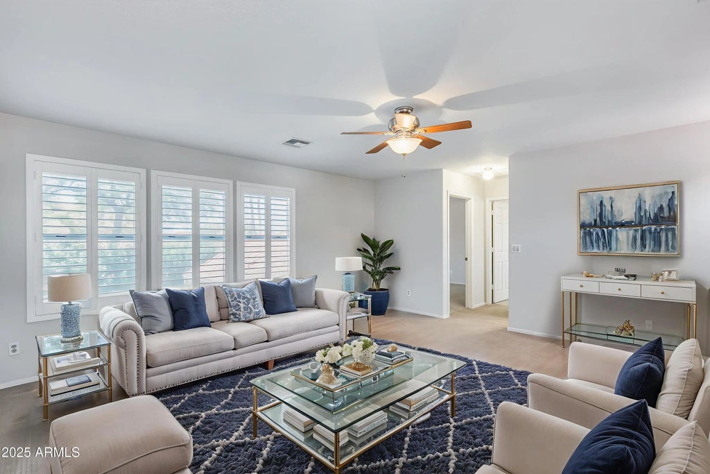 Bright, Modern & Spacious! This North Scottsdale home shows off a kitchen featuring white cabinets, tile backsplash, SS appliances, breakfast bar, eat-in area & wet bar for added convenience. Spacious loft upstairs with a 2nd wet bar offers flexible living space while the two large additional bedrooms offer walk-in closets! Downstairs split primary includes soaking tub, separate shower, double vanity & a walk-in closet with custom wardrobe. The backyard includes a covered patio with a fully retractable & adjustable awning, synthetic turf, updated decking & private pool/spa. Upgrades include a new roof, HVAC systems on both levels, updated doors, windows & shutters, landscaping & more. Easy access to the 101 & close to dining, shopping & recreation, this move-in ready home offers it all!