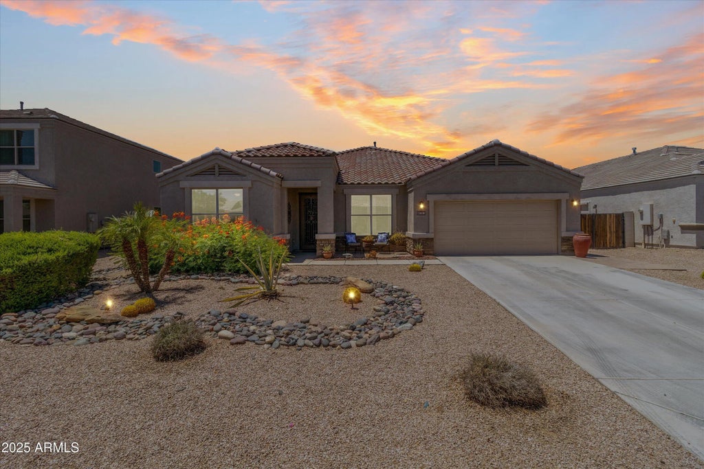 Located on the Queen Creek/San Tan Valley border, this stunning single-level home offers both comfort and convenience! Just minutes from the popular Queen Creek Olive Mill and Schnepf Farms. Built in 2018, this spacious 4 bedroom (1 bedroom is easily converted from a Den), 3 bathroom home features an expansive great room design that blends the family room, dining/flex space, and breakfast room into one fluid and inviting layout. The bright, eat-in kitchen offers seating at the oversized kitchen island, and premium stainless-steel appliances including a refrigerator, double oven range, and custom stainless range hood. This kitchen is a dream for both everyday living and entertaining! This gorgeous home offers wood plank tile, 10-foot plus ceilings, customized entertainment wall, a huge laundry room, and a functional layout. Enjoy the privacy of an oversized lot that backs to a common area, giving you serene backyard views. Plus, a roomy 3-car tandem garage offers ample space for vehicles, storage, or weekend projects. One of the perks of living in this neighborhood is being walking distance to Circle Cross Ranch STEM Academy and Empire Park which features basketball and volleyball courts, a baseball field, large grass areas, and shaded ramadas perfect for picnics. With style, space, privacy, and a prime location, this home checks all the boxes!