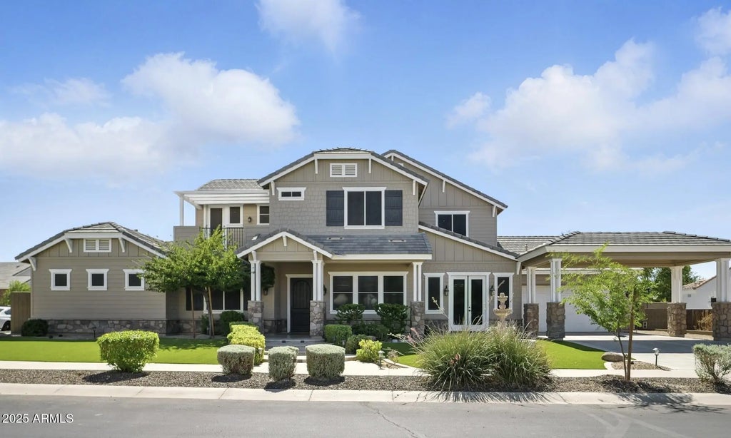 Experience the perfect blend of luxury, functionality, and design in this stunning 4,333 sq ft modern craftsman estate, perfectly situated on a premium corner lot in the highly sought-after gated community of Arboleda Ranch, an intimate enclave of only 31 custom homes offering an Arcadia-like charm in the heart of the East Valley. Built in 2012 and offered by its original owner, this 4-bedroom, 3 full bathroom, 2 half bathroom residence is a true showcase of quality craftsmanship and thoughtful design. Inside, you'll find soaring 11ft ceilings, smooth Venetian plaster finishes, and refined details throughout.