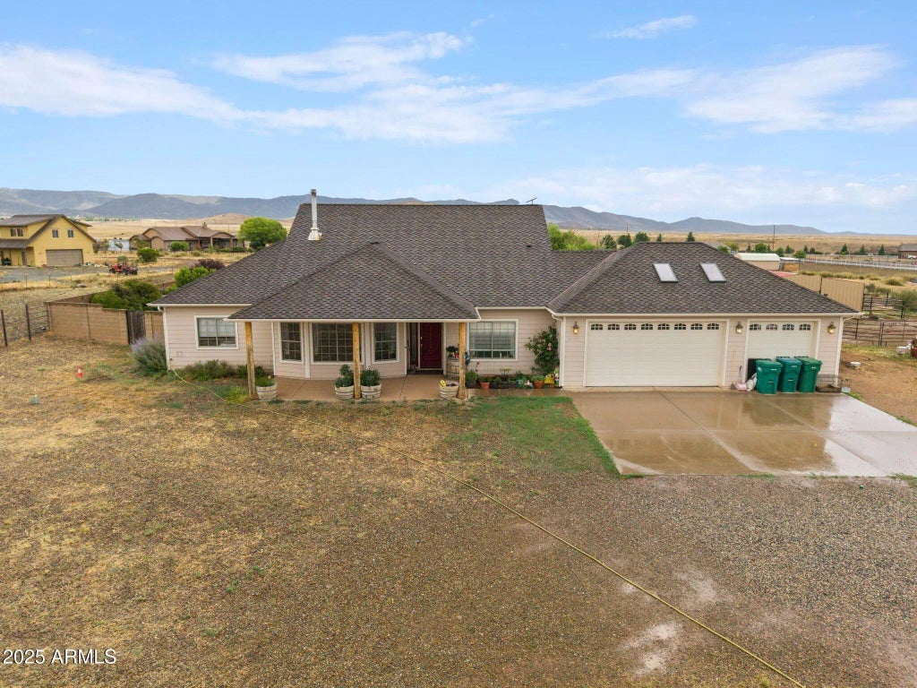 Welcome to your dream retreat in beautiful Coyote Crest! This 4-bedroom, 2-bath home sits on 3 fully usable acres, offering breathtaking views of both Mingus Mountain and Granite Mountain. Perfect for equestrian enthusiasts, including a 4 stall barn, tack room, and plenty of room for your horses to roam. Private well with additional holding tank. There's even a detached shop with insulated office space complete with heating and cooling, ideal for home business, or extra storage. Inside, you'll find a thoughtfully designed floor plan with a spacious owner's suite, open living areas, and large windows to take in the panoramic views. The backyard includes an underground pool, perfect for enjoying Arizona's sunny days. Don't miss this opportunity to own a piece of the high desert with room to live, work, and play!