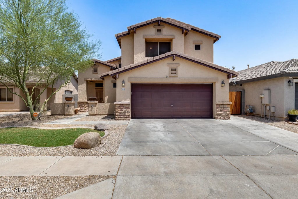 Step into this beautifully updated two-story home featuring 4 spacious bedrooms and 3 full baths, highlighted by a stunning remodeled kitchen with ample cabinetry and an open layout perfect for entertaining. The home's charming facade is complemented by low-maintenance desert landscaping and a 2-car garage. Inside, vaulted ceilings and neutral paint create a bright, airy ambiance throughout. The generous master suite offers a true retreat with a full bath including double sinks, a separate soaking tub, step-in shower, and His & Hers walk-in closets. Outside, enjoy the perfectly sized backyard with a covered patio, paved sitting area, and endless potential to customize your outdoor oasis.