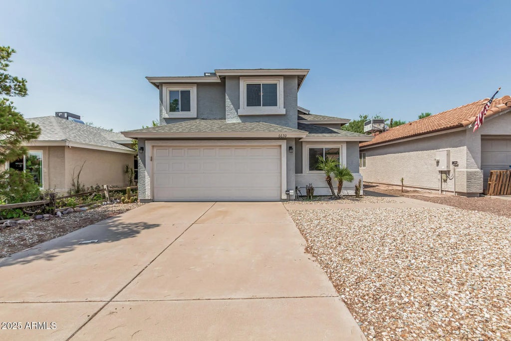 No HOA! Come see this lovely 2-level home in the sought-after Camelot Golf Club Estates! Great curb appeal, with a manicured landscape, and a 2-car garage with attached storage. The bright interior showcases soaring vaulted ceilings, tile flooring, a fireplace to add warmth & charm, neutral paint, & plenty of natural light pouring in. The pristine culinary space features white shaker cabinetry, tile backsplash, quartz countertops, & stainless steel appliances. Get a restful sleep in the airy main bedroom, offering carpet for added comfort, a walk-in closet, and a full en-suite with double sinks. The backyard boasts a cozy enclosed patio ideal for morning coffee & plenty of space for entertaining. What's not to love? Welcome home.