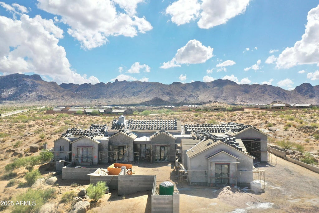 Construction is officially underway on this stunning 5,000 sqft custom contemporary farmhouse by Encore Design Group, perfectly positioned on a rare 3-acre lot with no HOA, just steps from Tom's Thumb Trailhead in Scottsdale's high desert. Blending bold architectural volume with refined comfort, this home is centered around a vaulted 24' x 24' great room with 15' ceilings and seamless flow to the outdoors. The design features 5 spacious bedrooms, 4.5 bathrooms, a dedicated game/theater room, private home office, and a chef's kitchen with prep kitchen and wine niche. Garage space includes an oversized 3-car (26' x 36') garage plus a 52' deep RV garage with 16' ceilings, ideal for car collectors, RV owners, or hobbyists. The backyard oasis includes an outdoor kitchen with a stone fireplace, custom pool with a separate integrated spa, sunken fire pit perfect for stargazing, an expansive artificial turf zone, lush plantings with mature desert trees, boulders, & revegetated NAOS area, & last but not least a fully irrigated and privately fenced backyard ideal for entertaining and family living. The property is located in a serene desert setting with panoramic mountain views, this property offers unmatched privacy, peace, and proximity to trails, golf, and shopping. Estimated completion early 2026.