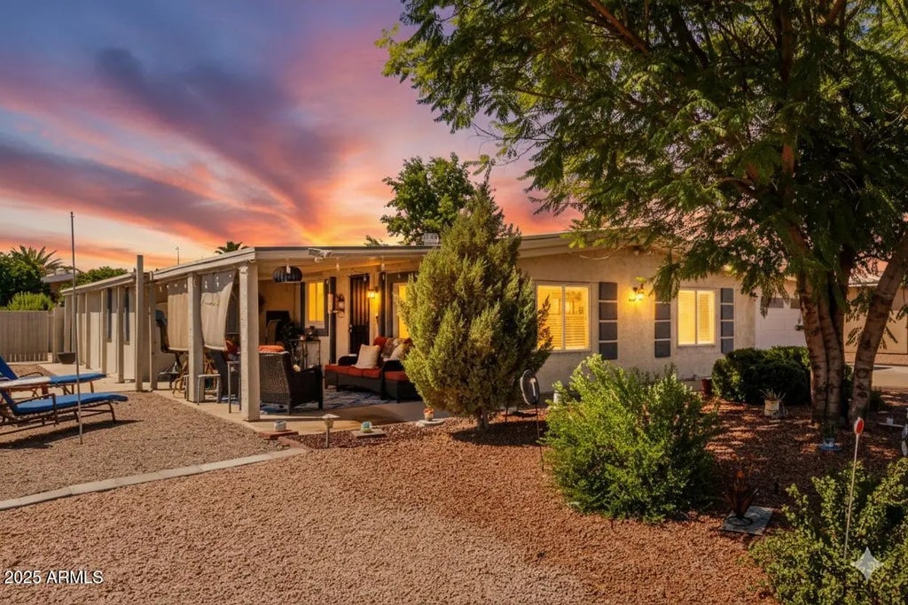 Welcome to easy living in the vibrant 55+ community of Sun Lakes. This fully furnished, well-maintained 2-bedroom, 2-bath home features a spacious front patio perfect for morning coffee or chatting with neighbors. Inside, vaulted ceilings and tile floors provide a bright, open feel. The kitchen includes abundant cabinetry, built-in appliances, track lighting, and a convenient pass-through window. A bonus room offers flexible space for guests, hobbies, or a home office. The primary suite includes a walk-in closet and private bath. The backyard offers a covered patio and storage shed. Sun Lakes is known for its resort-style amenities including golf, pools, pickleball, fitness centers, restaurants, walking paths, and hundreds of clubs and activities to keep you active and connected.
