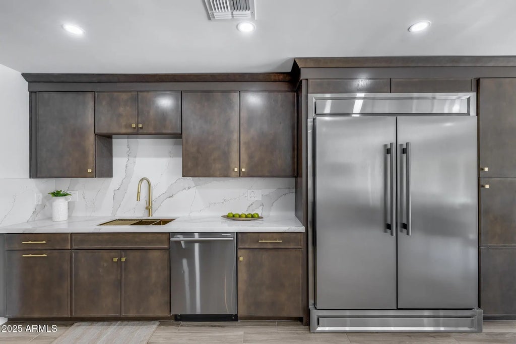 Luxury Living! This beautifully renovated 4-bed home blends style & functionality in Scottsdale's McCormick Ranch! The kitchen boasts white quartz countertops & backsplash, SS appliances & dark cabinetry, all set on premium porcelain tile throughout. A newly added primary suite is expansive & has backyard access, walk-in closet with built-ins & ensuite with double vanity, soaking tub & floor-to-ceiling tiled walls & shower. A second bedroom offers its own ensuite, plus other bedrooms & bathrooms have been freshly updated. Vaulted ceilings & abundant natural light create a bright, airy feel & a large sliding door opens to the backyard pool & patio. With walking & biking paths, playgrounds, tennis courts & golf—everything you need to enjoy the Arizona lifestyle in one home & community!
