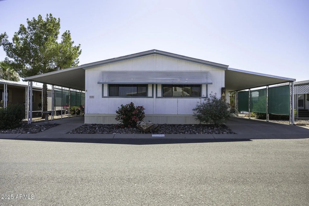 What a charming 2 bedroom, 2 bath home in Sunwest Resort! Features include a bright and open living space, breakfast bar, dining area with beautiful built-in storage, laminate wood floors, ceiling fans, disposal in kitchen, and a covered patio with metal roof. The water heater and HVAC unit are less than 4 years old and the shed has power. Come enjoy life and all this park has to offer!