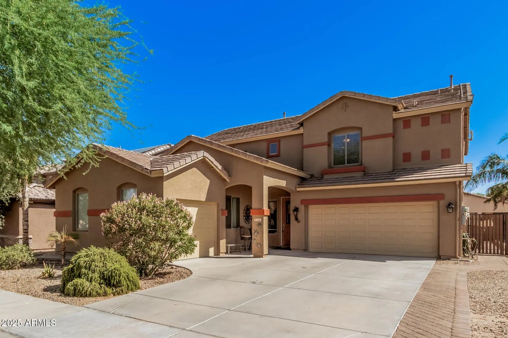 Discover all the charm & comfort of this stunning 2-story home with POOL! Take a look at the bright interior, featuring tile flooring, carpet in all the right places, soaring ceilings, arched passageways, and an earthy palette. The impeccable kitchen awaits your culinary adventures, showcasing cabinetry with crown molding, tile backsplash, spacious counters, stainless steel appliances, and an island perfect for quick bites. The main bedroom has two walk-in closets and a full ensuite with double sinks & a separate shower/tub. Make the versatile loft, bonus room, and den into your ideal entertaining spaces! Enjoy outdoor living to the fullest in the backyard comprising a covered patio, a curved cement bench with a fire pit, and a sparkling pool & slide for a fantastic summer! Welcome home!!