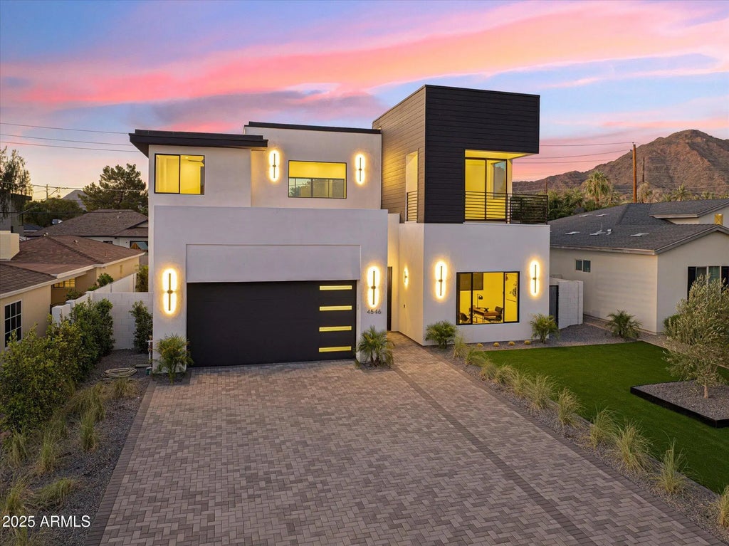 Modern luxury with Camelback Mountain views in this 5-bed Arcadia home, located in the coveted Hopi & Arcadia High districts. Enjoy 12' ceilings, a 16' multi-slide door, and open-concept living for seamless indoor-outdoor flow. Chef's kitchen features an oversized island, 48'' dual fuel range, 60'' panel-ready fridge/freezer & double dishwashers. Dual primary suites—one on each level—include spa-style baths and private outdoor access. Upstairs great room opens to a view balcony. Main-floor en-suite perfect for guests or home office. Home is EV ready, prewired for whole-house audio, and professionally landscaped. A true desert retreat!