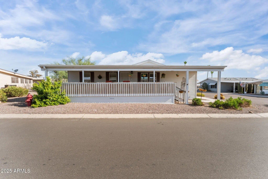 Set within Westpark's peaceful 55+ community, this beautifully maintained Palm Harbor home offers an inviting open floor plan with vaulted ceilings, new vinyl plank flooring, and a split-bedroom layout for privacy. A bonus room adds versatility, while the bright kitchen features nearly new appliances. Enjoy a full-length front porch, tandem carport with storage, and a small fenced courtyard. Community amenities include a heated pool, tennis, pickleball, library, fitness center, and vibrant social events. Embrace comfort, convenience, and connection in the heart of Wickenburg's desert charm. Home comes fully furnished!