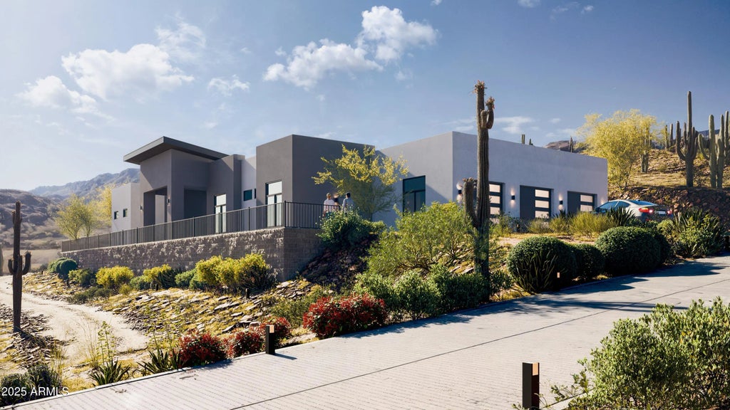 Stunning single-level 3,300 sq. ft. modern luxury home on a private 1-acre hillside lot with breathtaking views. Features soaring 12-foot ceilings, an open-concept floor plan, and walls of windows for natural light. Gourmet kitchen with custom upgrades, oversized waterfall island, and designer finishes. Luxurious primary suite with spa-like bath and walk-in shower. Secondary master/quest suite with walk-in shower. Outdoor living area is perfect for entertaining and enjoying sunsets. Spacious individual 3-car garage with 9-foot garage doors. This home is a rare combination of privacy, exclusivity, and modern design—a must-see!