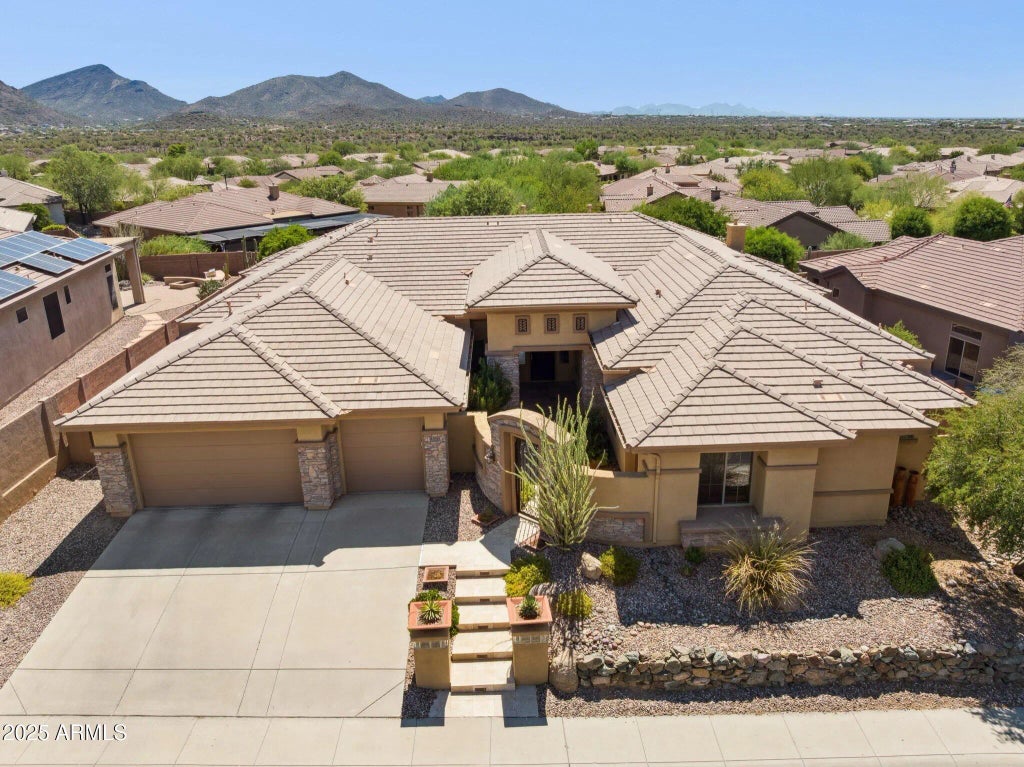 Welcome! This stunning home offers an abundance of open space and luxury, welcomed by a private gated courtyard with breathtaking mountain views in front and outback. You'll also appreciate the huge 3-car garage. Inside, the beautifully designed interior features elegant tile and wood-look flooring throughout. The gourmet kitchen is a chef's dream with a large center island and tons of storage. The main suite is a private sanctuary, complete with DUAL spacious walk-in closets.. Ideal for entertaining, as every bedroom but one features its own en suite bathroom. Guests will love the private casita, which includes an en suite bathroom and separate access. Additionally, there's a dedicated den that provides the perfect space for a home office, along with a separate study for homework.