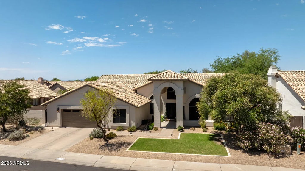 Beautifully updated home-single level, split floorpan, 4 bedrooms plus office - just a quick 2 minute ride to Tatum Ranch Golf Course! Walk thru the iron front door into soaring ceilings in the living and family rooms - with a view the awesome resort-like backyard including: sparkling pool, private spa, cool off with a commercial misting system on the covered patio & cabana, full underground speakers throughout the backyard, travertine pavers, basketball court and grassy area. The oversized primary retreat also has a view and door to the backyard! The elegant primary ensuite boasts stunning cabinets with quartz countertops, gold hardware, relaxing tub, gorgeous shower with 48 x48'' tile and marble tile floors set in a herringbone pattern-plus a closet designed by Classy Closets! The kitchen includes white cabinets, amazing granite countertops, and stainless appliances. Each bedroom is exquisitely decorated, includes a California Closet designed closet and black out shades. The office offers a built-in desk plus a built-in armoire to also use as a guest room. Laundry room has built-in cabinets plus hanging and drying racks. Garage is extra wide to include large storage space or to store your golf cart - plus a door to backyard. Home has owned solar too! Welcome Home!