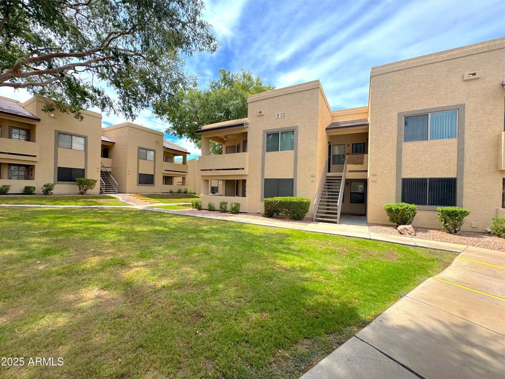 Charming 2 bed condo with an open feel floorplan and comfortable living! Enjoy tile floors throughout, updated custom shower in bathroom with double sink vanity. Inside washer and dryer. Kitchen features an added wine cooler & pantry cabinet, maximizing space & convenience. Updated dual pane windows. Updated HVAC system, Enjoy mountain views from your private balcony. This home provides access to community pool & spa - perfect for relaxation and recreation. Ideal for those seeking low-maintenance living. Assigned covered parking space. HOA fees include water, sewer, and trash. Close to US60 and the 202 freeways, major mall, golf, healthcare, etc.. Don't miss this opportunity!