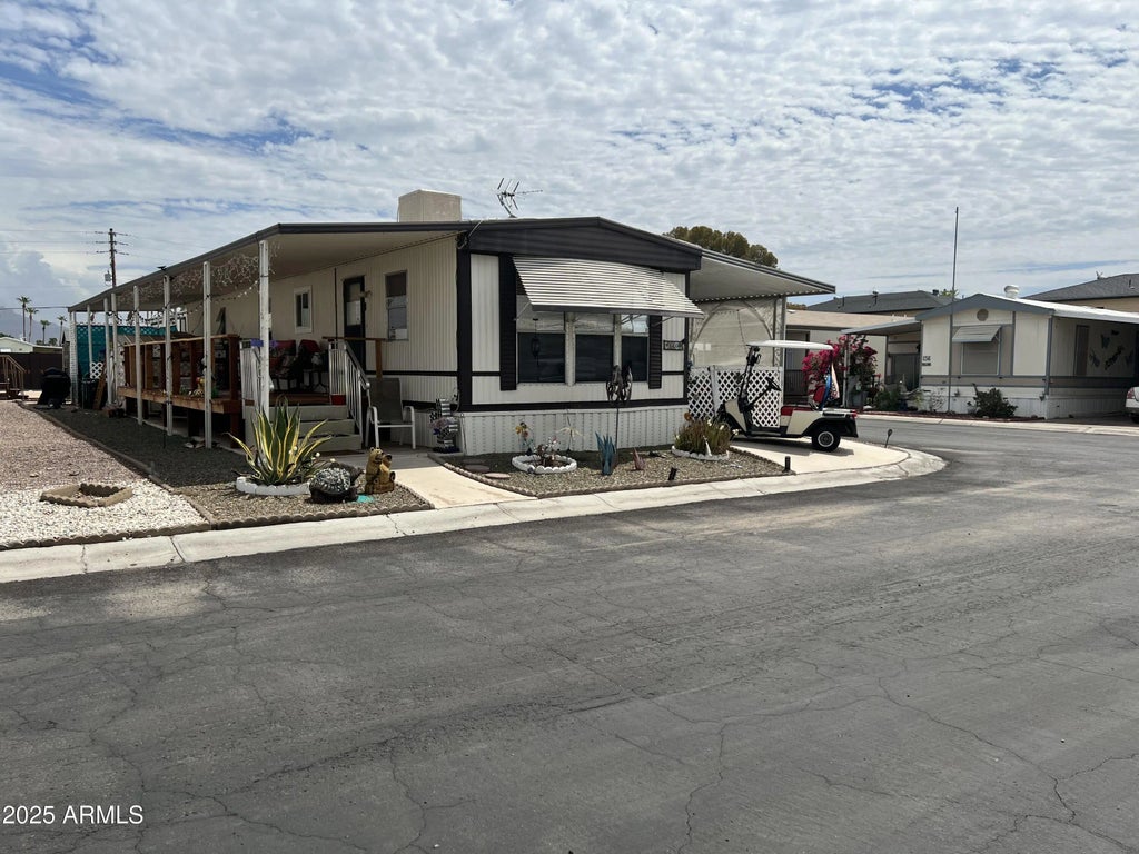 Welcome to this beautifully maintained 2-bedroom, 1-bathroom mobile home located in the heart of a vibrant 55+ community. This spacious and light-filled residence offers the perfect blend of comfort, convenience, and low-maintenance living. Step inside to discover an open-concept living and dining area, a well-appointed kitchen with ample cabinets and a cozy layout ideal for both relaxing and entertaining. Enjoy your morning coffee on the covered patio or take advantage of the central location near shopping, dining, medical facilities, and parks—everything you need is just minutes away. Great amenities, including clubhouse, pool, fitness center, planned activities. Don't miss your opportunity to join this welcoming 55+ community. House is fully furnished.