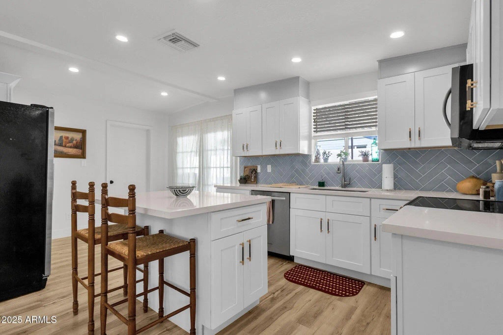 This beautiful fully furnished remodeled 4 bedrooms/3 baths single level home features modern wood look flooring throughout, a gorgeous white kitchen with quartz counter tops, custom backsplash, stainless steel appliances and so much more. The living room has a nice large fireplace with a white painted brick wall, a true focal point of the room. The rest of the home features 4 nice-sized rooms and upgraded bathrooms. The exterior has a large, covered patio with low maintenance landscaping. The property is located walking distance to Grand Canyon University and close to shopping & I-17 freeway access. This home is truly amazing, you will not want to miss this one! House is furnished, option to be removed if tenant does not need!