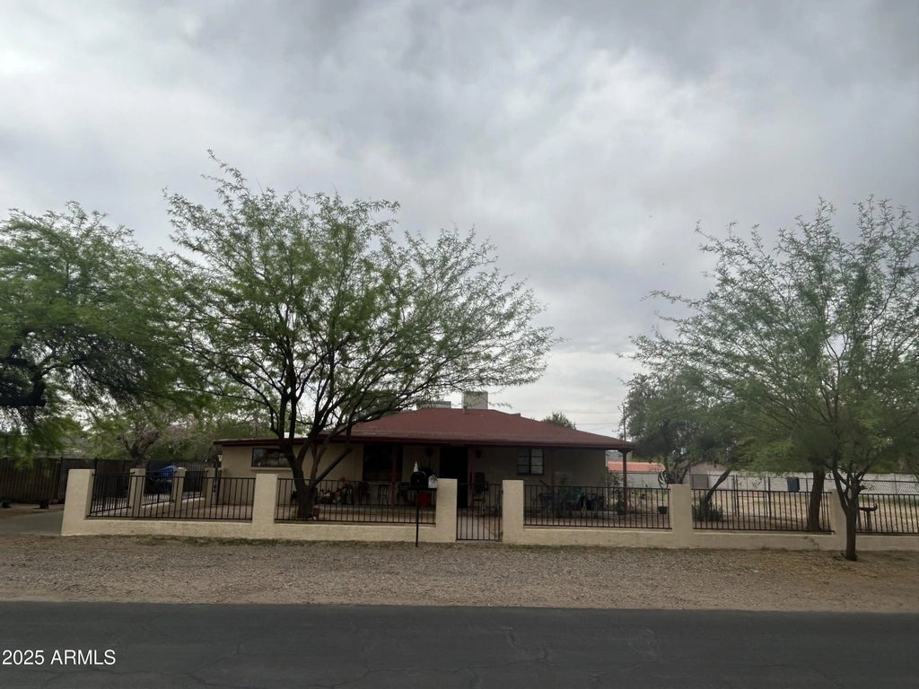 This property is just under 37,000 sq ft! A prime investment opportunity with endless possibilities. A highly sought after location, close to shopping, restaurants, bus lines and quick access to Interstate 101 and 51. Horse privileges and close proximity to Turf Paradise race track. NO HOA with plenty of land for your imagination. House offers 3 bedrooms, 2 baths along with a formal dining room.Both a covered porch and patio, the main suite offers access to a quaint courtyard. Beautiful wrought iron fencing in front, offers both east/west block fencing and back property line encompasses the alley. Don't miss out on this rare opportunity!