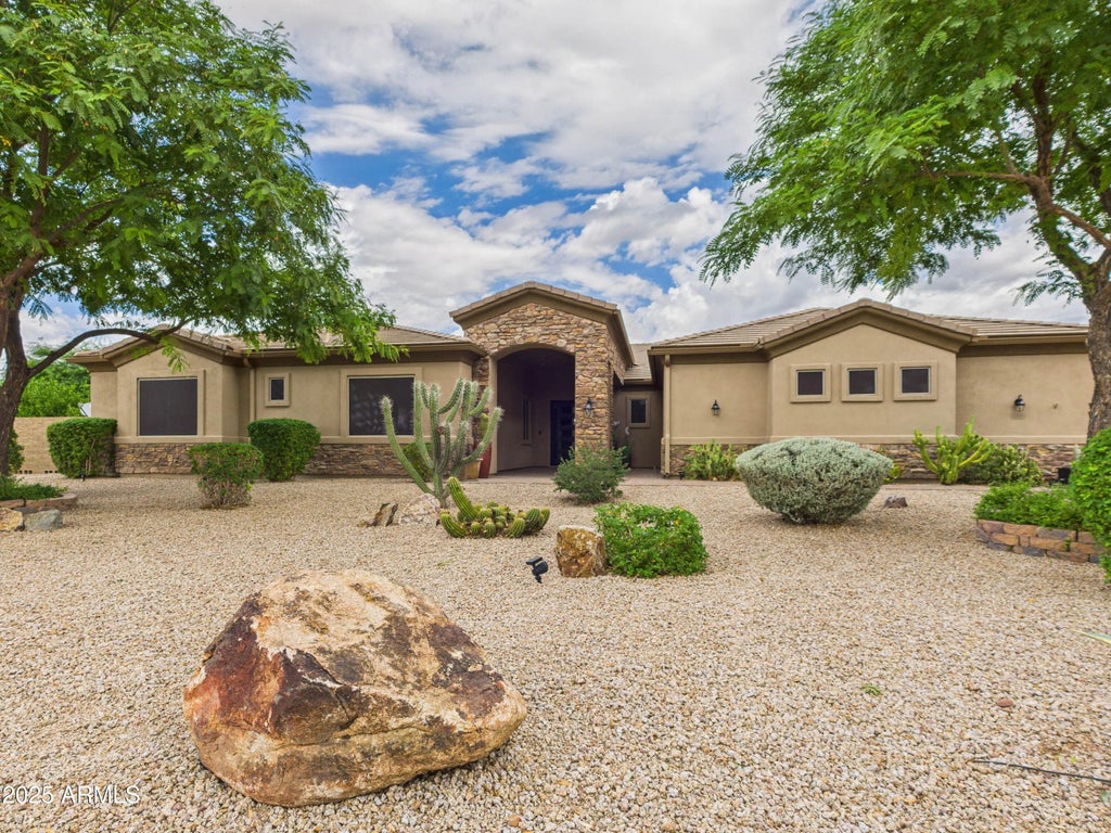 Luxury and freedom meet at this 2016 single-level estate on a full acre in Desert Hills.NO HOA,8-car parking,pool,RV access, and horse privileges. Set on a private paved road, this custom Ranch delivers serious space for toys with an attached 4-car garage plus a detrached 4-car shop. Double RV gates and long level drives make trailering effortless. A split guest wing offer (3) ensuite bedrooms: a flexible fifth bedroom/office adds options. The Primary suite flows to the patio and pebble-finish pool with covered BBQ bar. Corral, storage, workshop, endless potential. Minutes to I-17, TSMC corridor, and North Valley trails. NO HOA. Horses, RV's, and projects welcome.