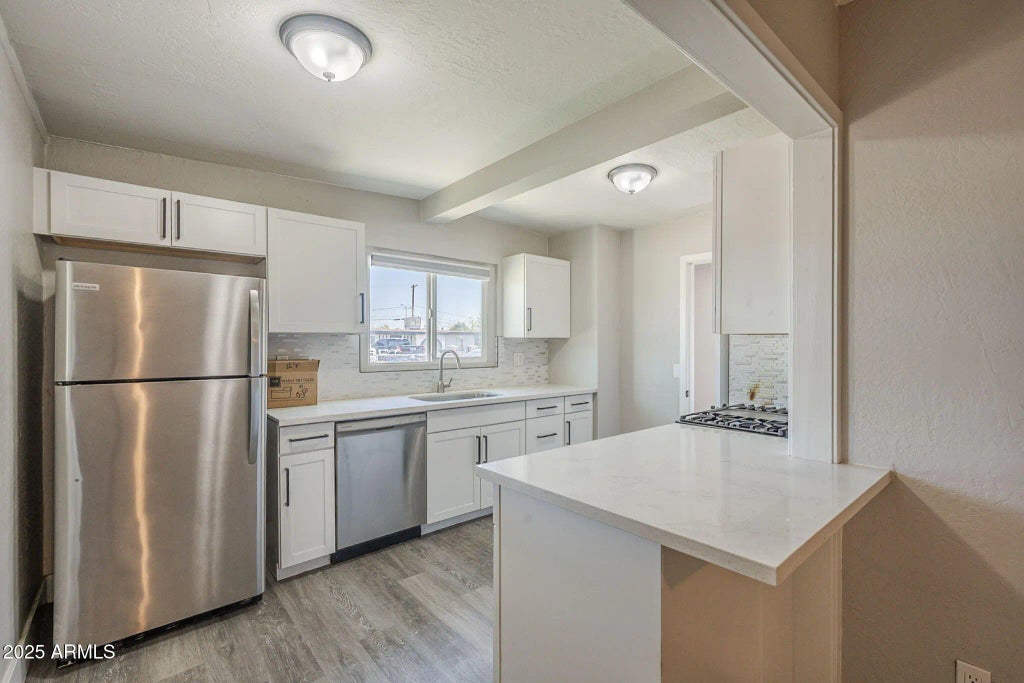 This quaint Mesa home offers a balance of comfort, style, and everyday practicality. The landscaping has been designed for easy upkeep with artificial turf in front and back. A shed in the backyard adds extra storage, and the RV gate paired with no HOA means you have the flexibility to park or store all your toys without restrictions. Inside, gorgeous flooring sets the tone for a warm and inviting space. The kitchen is a highlight, featuring matching stainless steel appliances, a gas stove, stylish backsplash, and plenty of cabinet space to keep things organized. It's a setup that feels both functional and modern, ready for weeknight meals or weekend gatherings. This home isn't just move-in ready, it's designed to make daily living easier, with thoughtful updates and low-maintenance features that give you more time to enjoy your space.