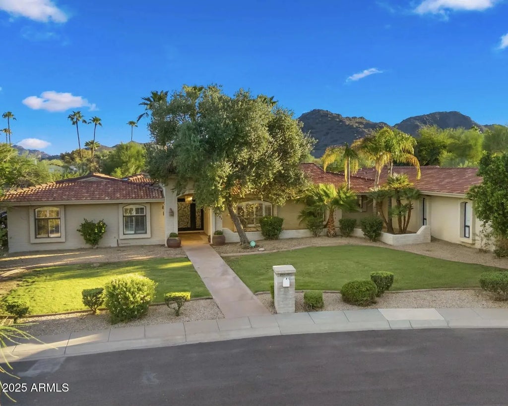 A rare find!, This 5-bedroom, 3-bathroom home in a gated community of only 9 homes offers luxury and comfort. With a spacious game room, a 3-car garage, and a gorgeous yard featuring a huge outdoor kitchen and patio, it's perfect for both relaxation and entertaining. Enjoy breathtaking mountain views and a north-south facing orientation that maximizes natural light. Located within walking distance to the vibrant shops and restaurants at Tatum and Shea, and in the highly sought-after 3C's school district, this home combines tranquility with convenience. A true gem in an unbeatable location!