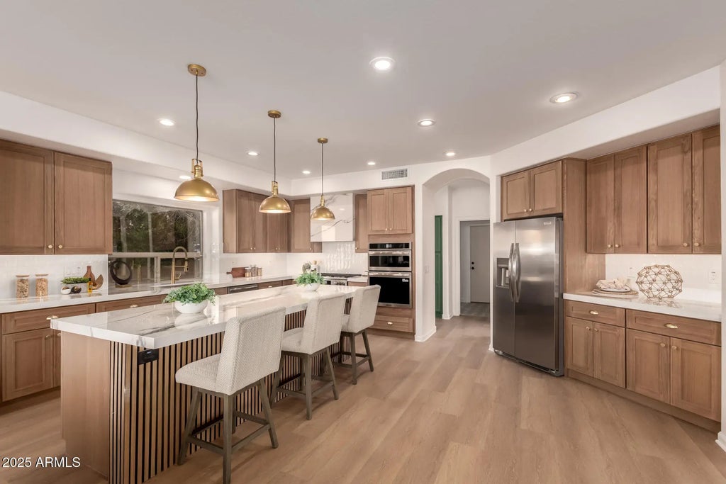 Discover this STUNNING REMODELED GEM situated on a premium OVERSIZED cul-de-sac lot! Displaying a 3-car side-entry garage, RV gate and professionally manicured landscape, it is designed to impress from the very first glance. Experience a perfect blend of modern elegance & timeless charm. Rich LVP flooring, tall vaulted ceilings, abundant natural light, archways, a dramatic curved staircase, & refined finishes create a warm and inviting ambiance throughout. You'll LOVE the airy living room with its cozy fireplace, formal dining room and the captivating family room. Chef's kitchen showcases recessed & pendant lighting, tile backsplash, a plethora of cabinetry, sleek quartz counters, a center island with a breakfast bar, stainless steel appliances, and a breakfast nook. HUGE master suite is a private sanctuary! Plush carpet, balcony access, double door entry and an ensuite comprised of two vanities, tiled shower with frameless glass enclosure, jetted tub, make-up desk and a walk-in closet complete the picture. Additional highlights include a flexible den & a large loft. Enjoy incredible mountain views from the balcony or host lively get-togethers in the oversized backyard, boasting a covered patio and an enormous sparkling pool with grotto, water slide and water feature! This rare find has it all!