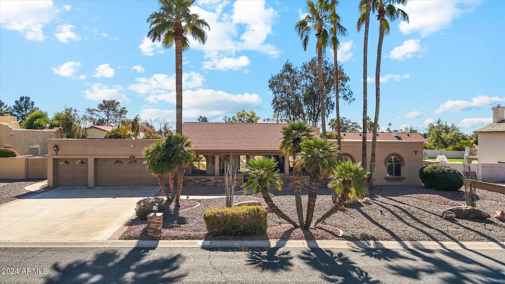 This is your chance to own a piece of paradise in the heart of Phoenix! Nestled on a large 1/2 acre lot, this home offers plenty of space for outdoor living and entertainment. From the moment you drive up, you will be charmed by the unforgettable curb appeal that continues as you walk from front yard to the custom iron entry door. Once you step inside you will be in awe of the vaulted ceilings with exposed beams and open floor plan that is perfect for entertaining. The remodeled chef's kitchen is a true masterpiece with custom cabinets, quartzite countertops, built-in SS appliances, large kitchen island, and walk-in pantry with additional refrigerator. The formal dining room with wet bar is perfect for hosting dinner parties or special occasions.