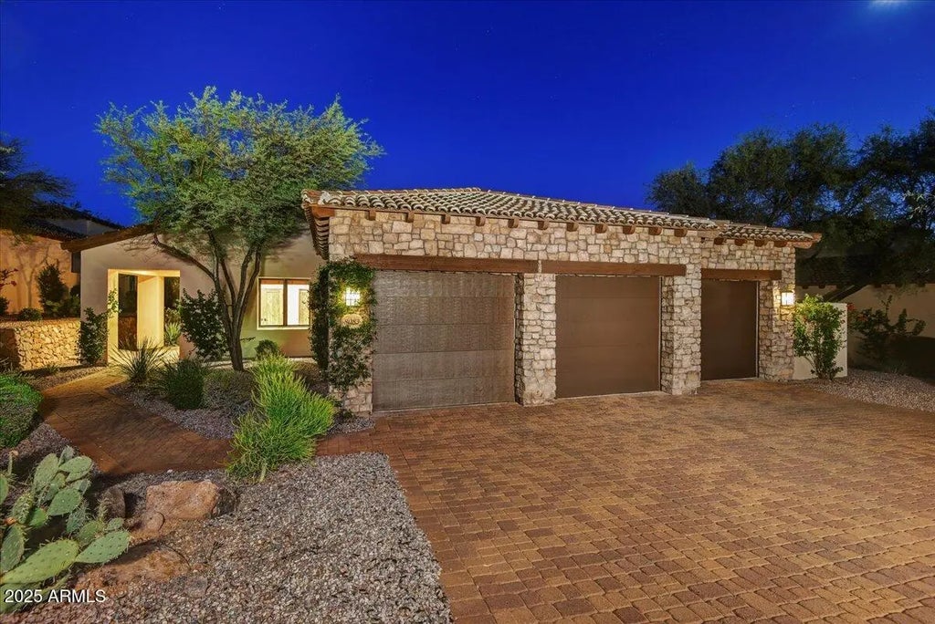 VOTED BEST ON BROKER TOUR! This very rare, 3 CAR, Greythorn villa is ready to welcome you home! Featuring 3 beds/3 baths & OFFICE, the updated kitchen dazzles with quartzite counters, Viking appliances, dry bar for a coffee station and wine cooler. Spacious primary suite offers dual closets, soaking tub & separate shower. Guest quarters are located away from living areas and primary suite ensuring privacy for all. No expense spared on pool with baja shelf & spa. Heats in winter, cools in summer for maximum use. Custom BBQ island has concrete counters, stainless fridge, & kegerator. Warning: once here, you'll never want to leave home. Gated community, 2 premier Jack Nicklaus designed golf courses, pickleball, tennis, fitness center. Sky Harbor:32 mi Retail/Dining:13 mi Hiking:5 mi