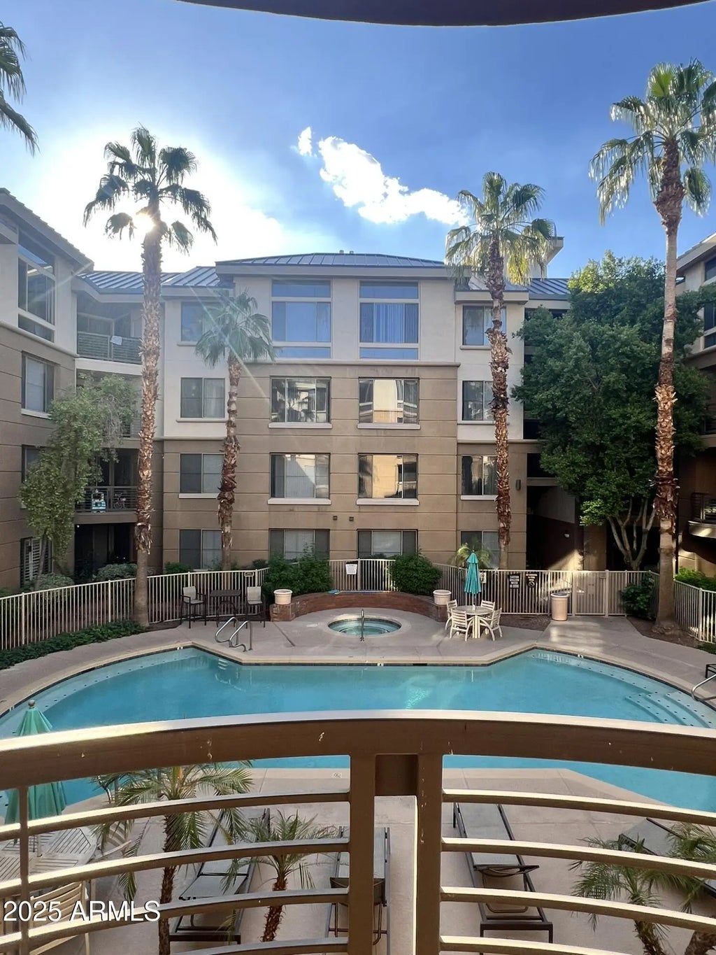 Welcome to the Biltmore Corridor where everything is conveniently located, from many different eateries nearby, the 51 freeway access and shopping galore! This home has a fresh coat of paint and attractive vinyl flooring throughout. Your great room boasts resort style living with amazing views of one of three community pools and jacuzzi! Enjoy coffee or cocktails from the private balcony in this 2 bed 2 bath home. The kitchen is light and bright with white cabinets & appliances. The great room is open and spacious with views of palm trees and sunshine. The community amenities also include a fitness center with sauna in the locker rooms, clubhouse, conference room and business center. Waiting for you to personalize, this home is move in ready!