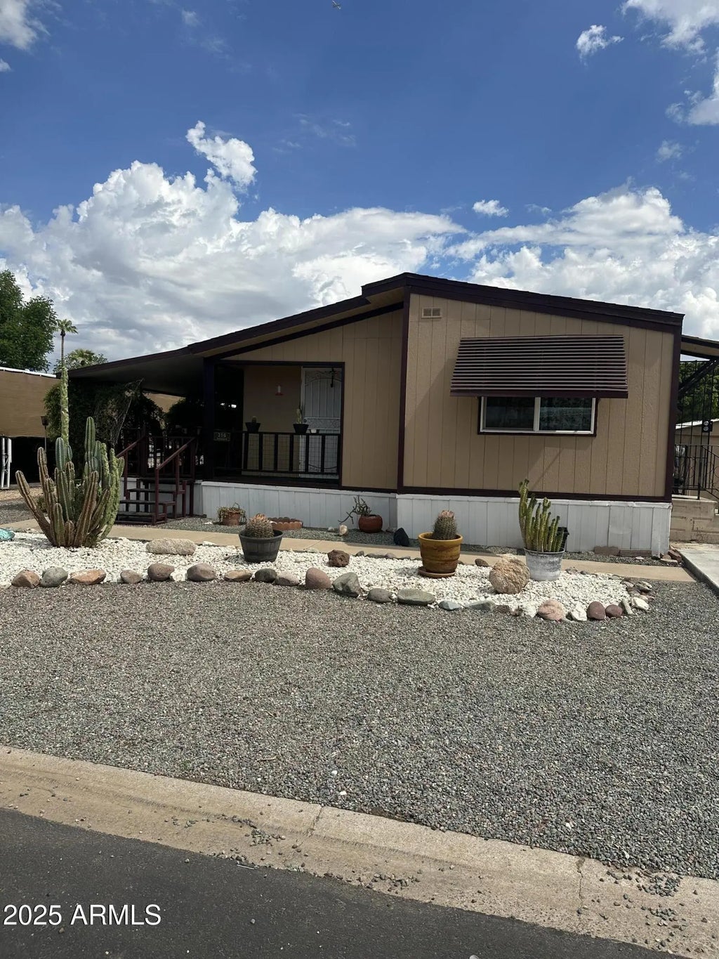 Welcome Home! This double wide manufactured home, built in 1973 and measuring 24 x 52 offers a large living space and welcoming covered patio deck, great for outdoor BBQ or morning coffee. Recent upgrades include all new master bathroom, complete with Tile shower and double vanity, new faucets and new tile flooring. New Roof 2024, All new Pex water lines 2024, Exterior New siding 2023 and Freshly painted exterior 2025. New Windows 2023 and inside drywall with the exception of kitchen and hall bath. Two outdoor storage sheds and a 2 car concrete driveway! The community offers an array of amenities, including a refreshing swimming pool and clubhouse equipped with kitchen and sauna, horseshoes, shuffleboard, a billiard room, laundry facilities and Fitness center
