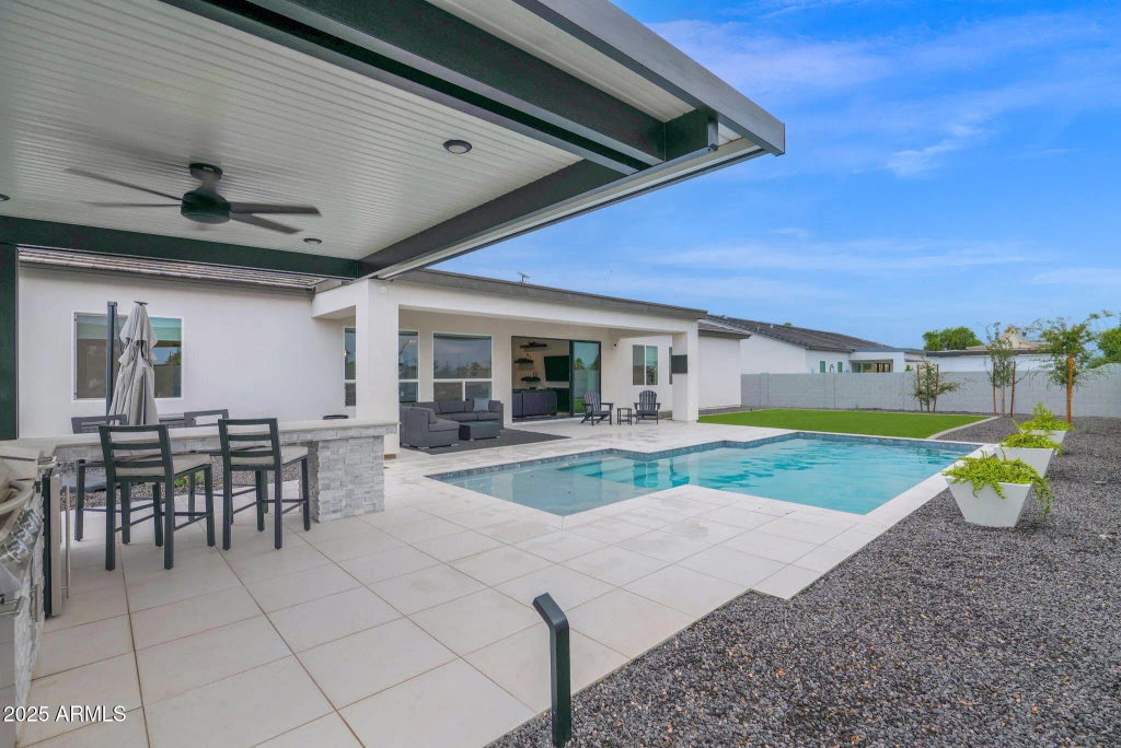 This stunning home is located in a beautiful area. Entertainers dream kitchen with built in Wolf appliances, quartz countertops, and high end cabinets with 42inch uppers. All this overlooks the custom backyard with pool, gazebo, built in BBQ /bar/refrigerator, and a large artificial turf area for your enjoyment. Home has 4 bedrooms with large closets and 3 bathrooms. It's a must see and move in ready.