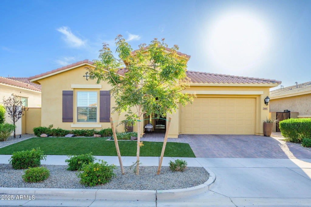 Stunning luxury home in Eastmark with approx. $155k in upgrades! The elegant interior features wood-plank-tile th/out. Bright white gourmet kitchen w/brick backsplash, convection micro-wave, quartz counters & island, gas cooktop, pot filler, custom cabinet encased hood, dbl. ovens, wine fridge, extended buffet. SUN ROOM w/french door. Reclaimed wood accents, faux wood beams, shutters, & surround sound. 8 ceiling fans th/out. New water softener & water heater. The backyard oasis; play pool w/misters, turf & landscape, built in BBQ & seating, putting green, pergola w/custom Gabion entertainment center, sunbrella drapes & travertine pavers. 3C garage w/epoxy floor. Premium lot across from neighborhood park. Gated community. This home blends modern style w/thoughtful design—truly a must-see.