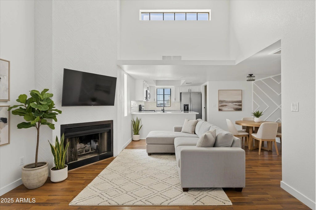 Beautifully updated condo in a prime North Phoenix location just minutes from the 101 and I-17. This light and airy home features new flooring, fresh paint, and stylish modern finishes throughout. The open living area with vaulted ceilings creates a bright, welcoming feel. The kitchen has been refreshed with new appliances, making it perfect for everyday living or entertaining. The primary suite includes a walk-in closet, dual sinks, and a private balcony. Direct garage access adds everyday convenience. Close to shopping, dining, parks, and major freeways, this home is move-in ready and ideally located — the whole package!